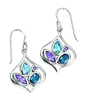 Elements - E3610 - Boucles d'Oreilles Pendantes Femme - Argent 925/1000 5 Gr - Améthyste - topaze